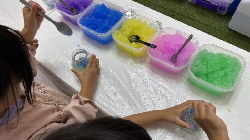 ワークショップは、ペンダント・キラキラ水族館・サンドアートのアクアリウムがありました。