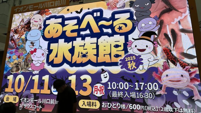 10月の三連休、イオンモールで開催中の「あそべ〜る水族館」に行ってきました。