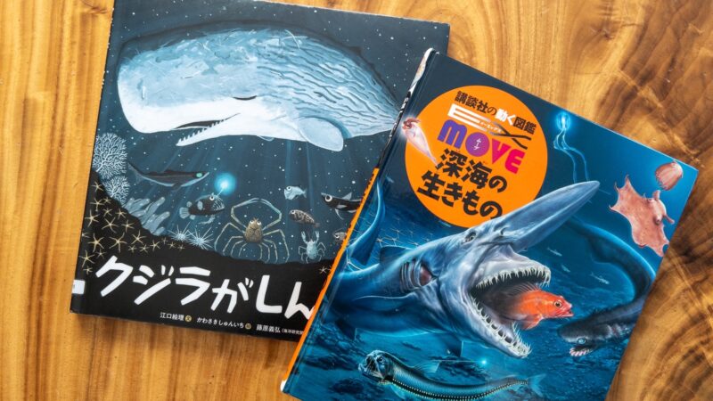 一方で年少さんくらいだと、まだ「死」の概念は難しく、図鑑的に楽しんだり、深海の生きものがクジラを食べているという部分にワクワクしたり。